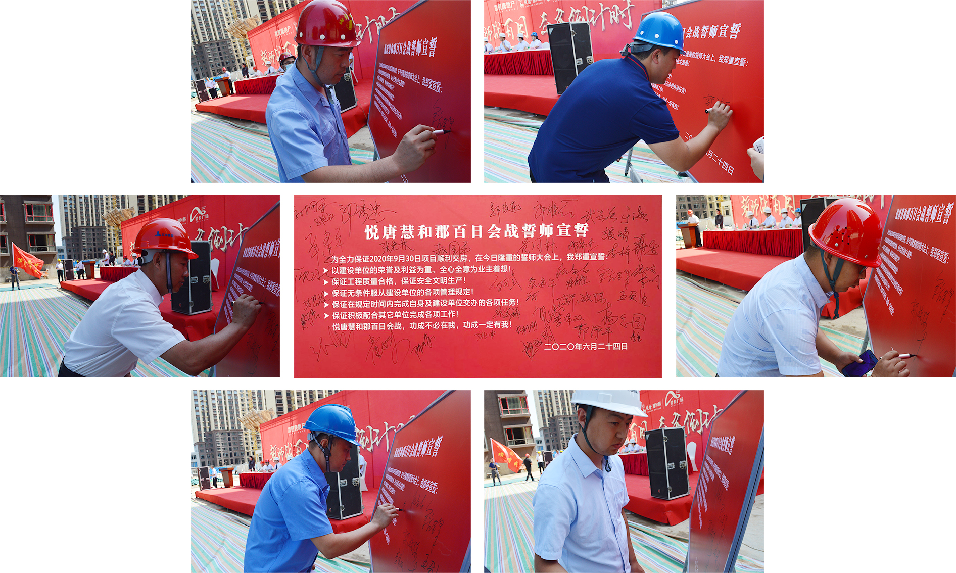 誓師戰(zhàn)百日,交房倒計(jì)時!為全力保證項(xiàng)目交房任務(wù)圓滿完成,嚴(yán)格兌現(xiàn)向廣大業(yè)主的承諾,2020年6月24日上午,山西悅唐房地產(chǎn)開發(fā)有限公司組織進(jìn)行“施工現(xiàn)場觀摩檢查暨工程百日會戰(zhàn)誓師大會”。中維控股集團(tuán)董事長郭秀忠先生、總裁郭雅磊先生,悅唐地產(chǎn)執(zhí)行總經(jīng)理郭改花女士、總工程師張強(qiáng)先生,以及項(xiàng)目各總包、監(jiān)理、分包單位負(fù)責(zé)人等主要領(lǐng)導(dǎo),中維控股集團(tuán)、各參建單位員工代表參與本次活動。