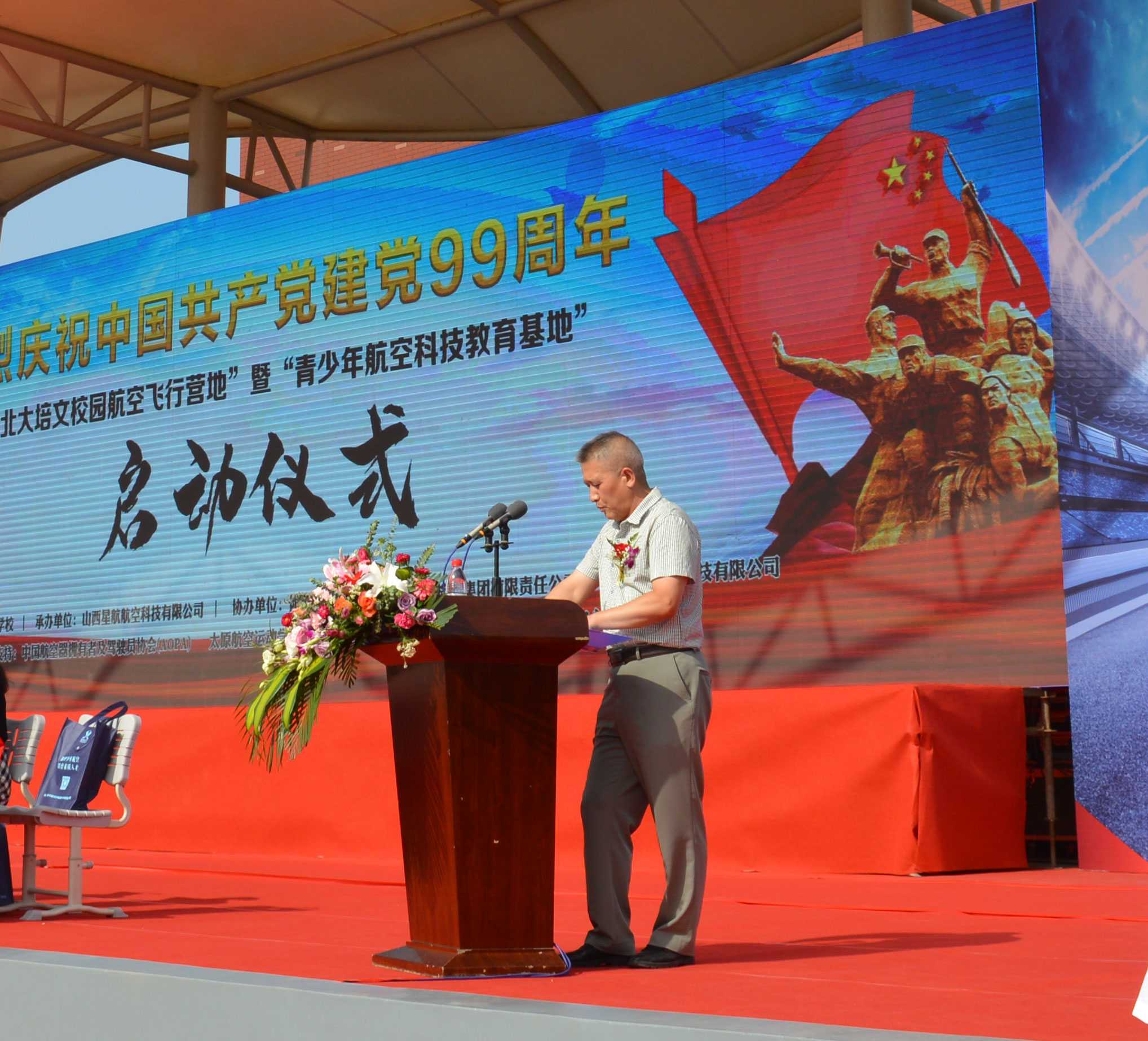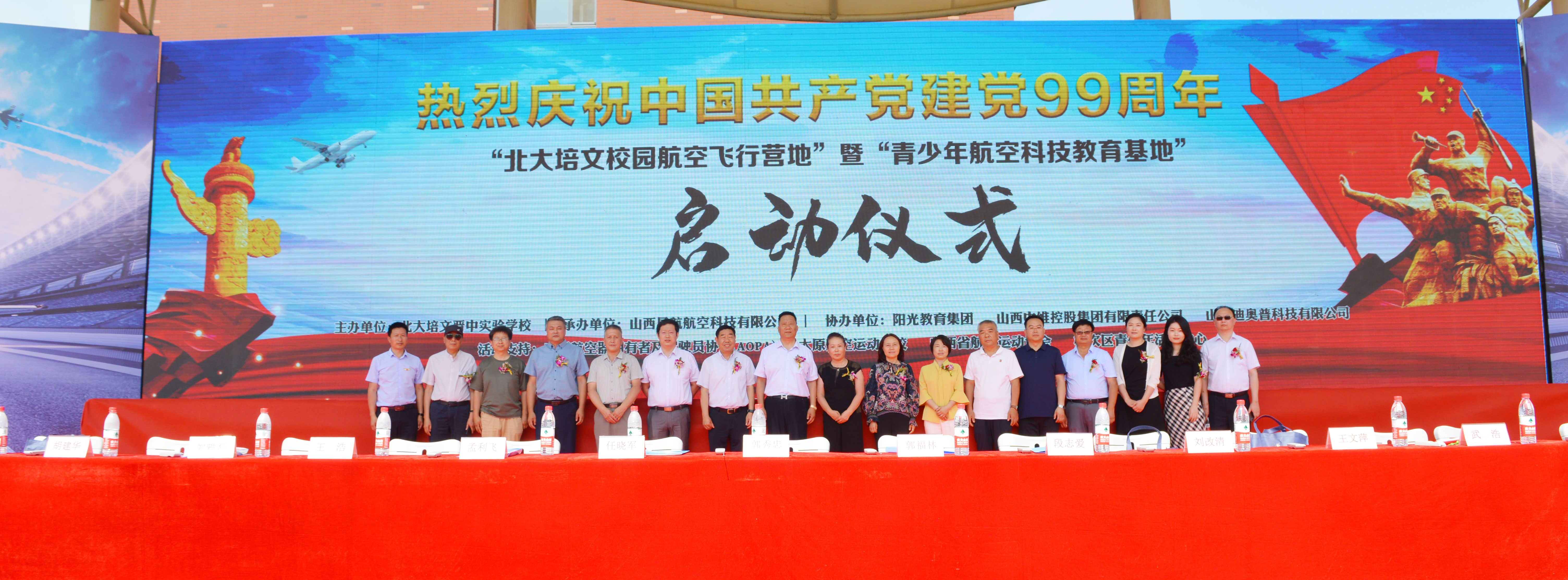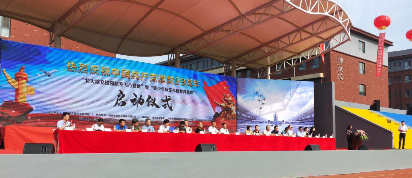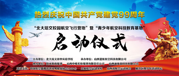 在中國(guó)共產(chǎn)黨誕辰99周年之際,為了進(jìn)一步培養(yǎng)青少年的航空愛國(guó)精神、全面推動(dòng)山西省航空特色教育發(fā)展,實(shí)現(xiàn)省通用航空產(chǎn)業(yè)的全鏈接。北大培文晉中實(shí)驗(yàn)學(xué)校于2020年7月1日上午八點(diǎn)隆重舉行了“校園航空飛行營(yíng)地”暨“青少年航空科技教育基地”啟動(dòng)儀式。